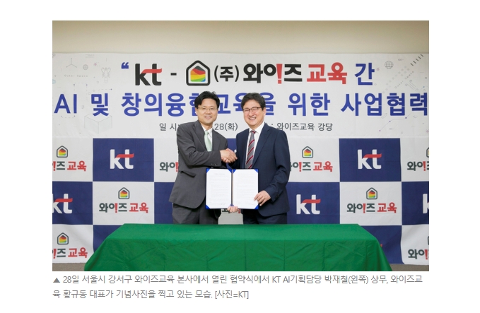 (ÁÖ)¿ÍÀÌÁî±³À°, KT¿Í AI âÀÇÀ¶ÇÕ±³À° »ç¾÷ MOU ü°á